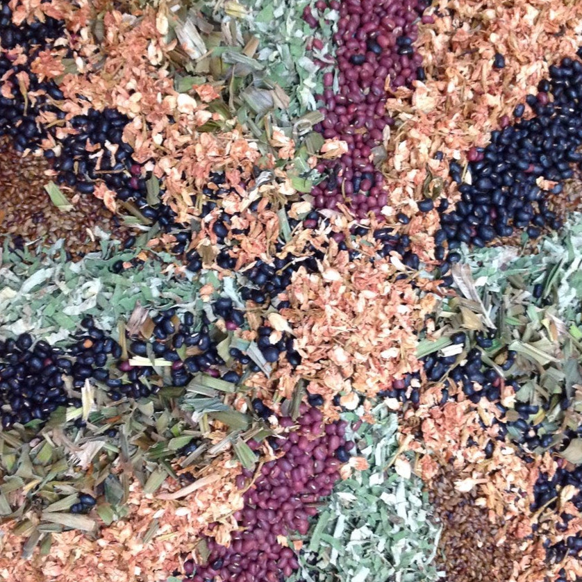 Thành phần: gạo lứt huyết rồng ,đậu đen xanh lòng, đậu đỏ, đậu xanh, thảo quyết minh ,hoa hoè, hoa lài, lá dứa