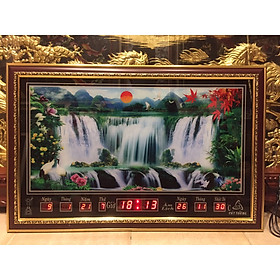 Tranh lịch đồng hồ vạn niên suối chảy 45x86cm #tranhlichvannien #tranhtrangguong #tranhtrangtri