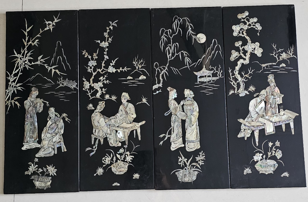 ✨Tranh sơn mài 4 tấm CẦM KÌ THI HỌA, sơn mài xưa, cẩn ốc chìm đẹp 50x80 cm