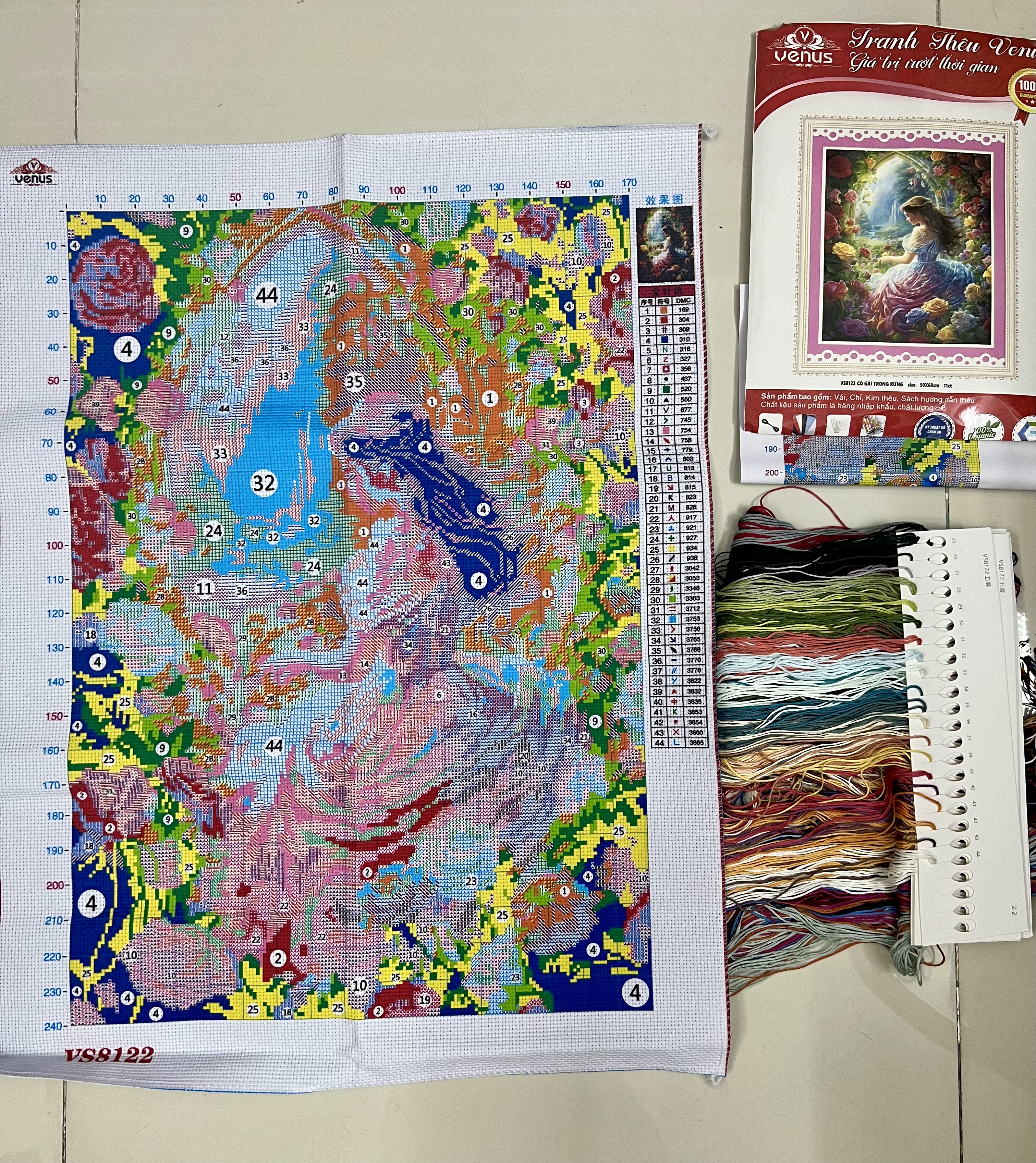 Tên tranh: Tranh thêu chữ thập Cô gái vs8839 Sản phẩm là tranh của hãng venus Thể loại: Tranh thêu chữ thập - sản phẩm này tranh chưa thêu. Kích thước: 50 x 67 cm
