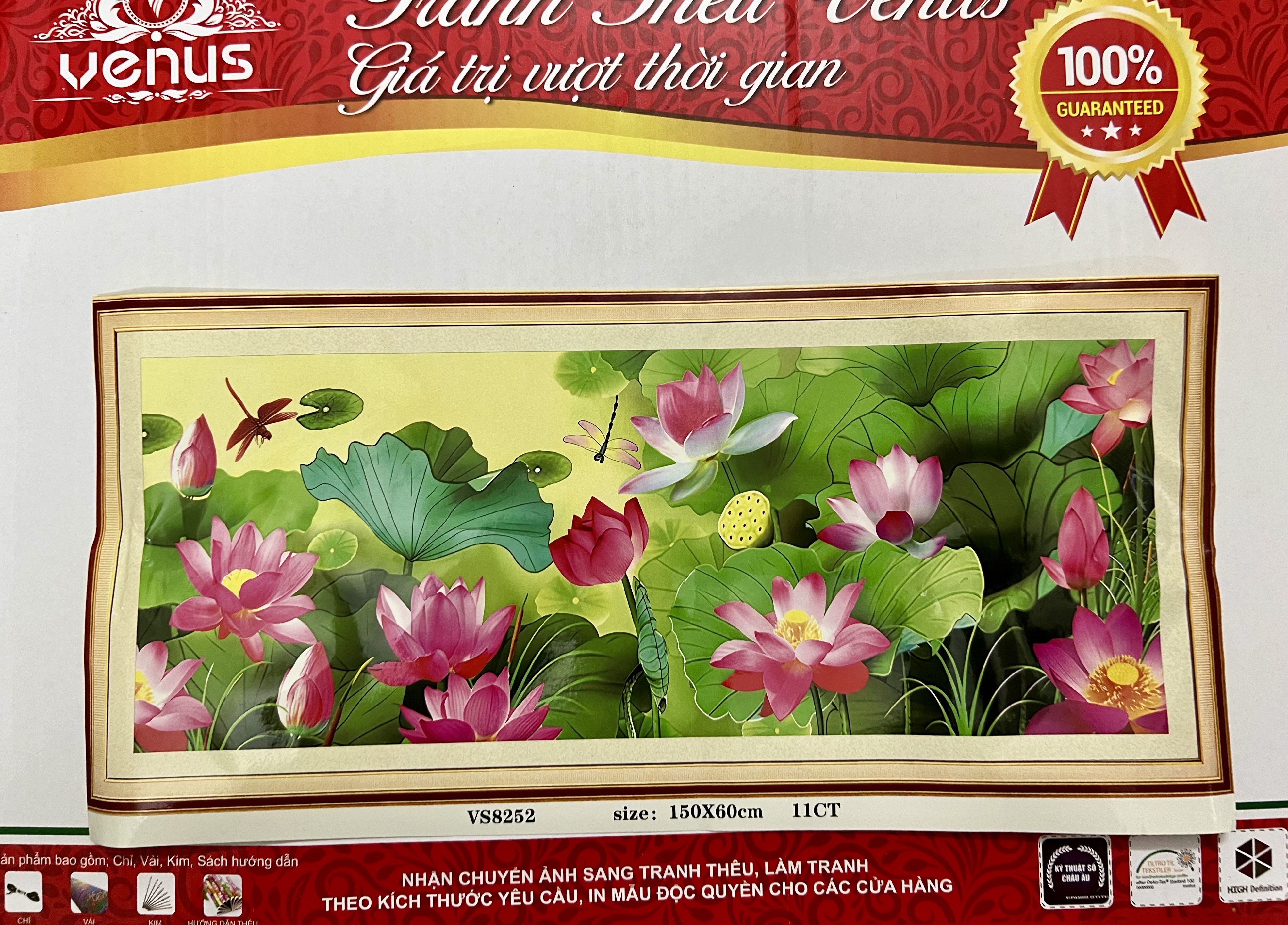 ✨Tranh thêu kín Hoa sen (đầm sen) Vs8252, kích thước 150x60 cm, 11ct thêu 3 sợi