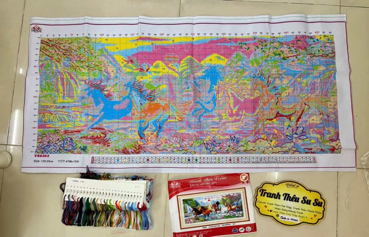 Sản phẩm này là tranh của hãng Venus phôi rất đẹp và bền màu. Vị trí khách cần thêu trên tranh: thêu kín bức tranh Kích thước: 110 x 55 cm Sản phẩm tranh thêu