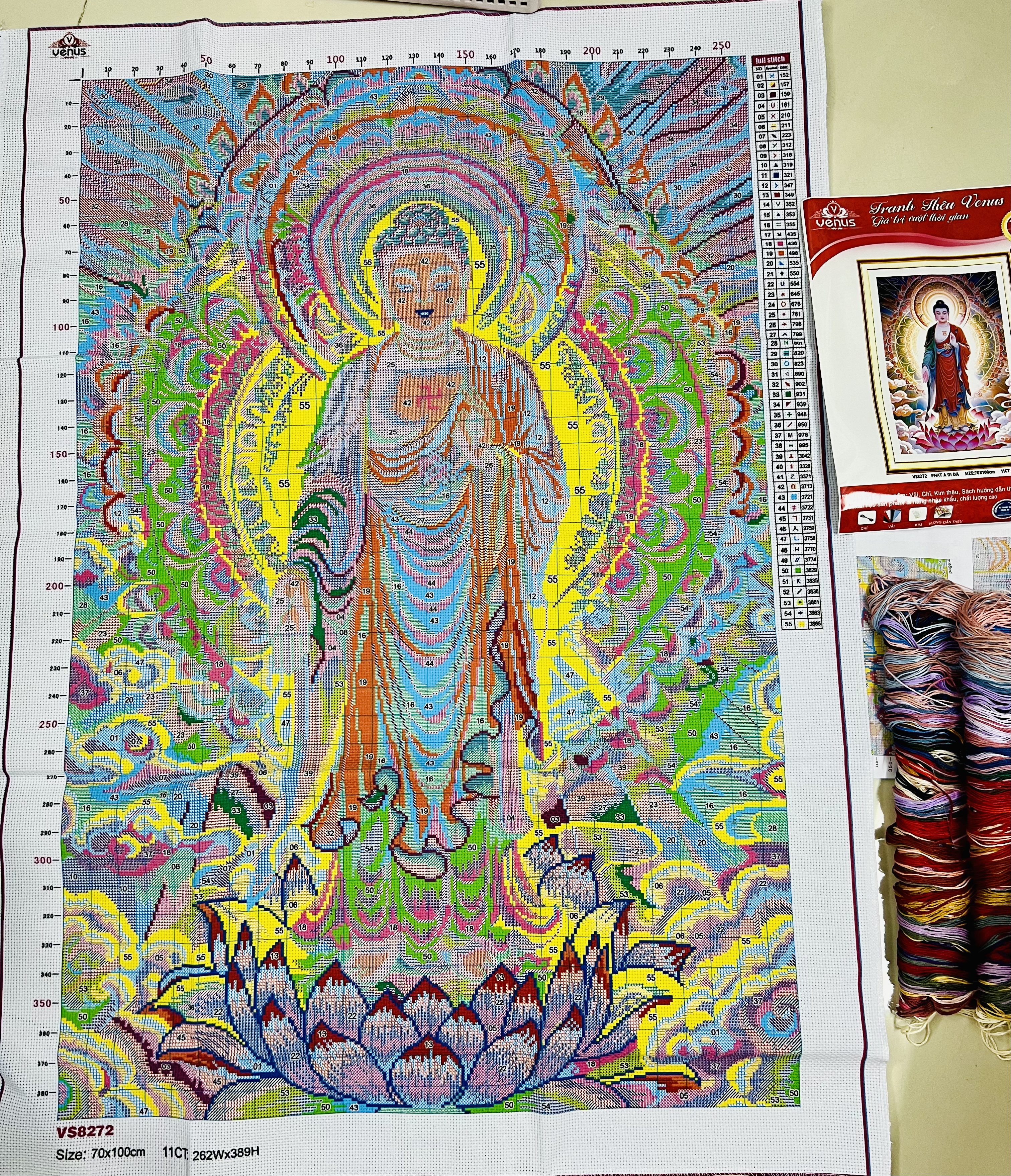 ✨Tranh thêu kín Phật a di đà vs8272, kích thước 100 x 70 cm, 11ct thêu 3 sợi