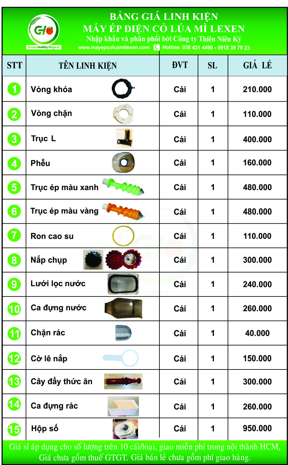PHỤ KIỆN MÁY ÉP CHẬM LEXEN, HIẾM KHI HƯ HỎNG NHƯNG HÃNG VẪN LUÔN CÓ SẴN ĐỂ PHỤC VỤ KHÁCH HÀNG.
