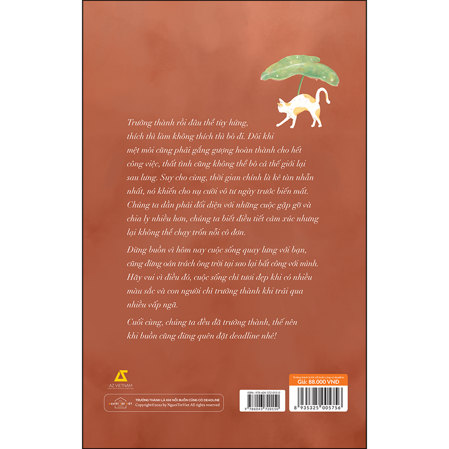 “Trưởng thành là khi nỗi buồn cũng có deadline” sẽ tưới mát sự cô đơn “héo mòn” từng ngày của bạn, kéo bạn phần nào thoát khỏi cuộc sống khắc nghiệt để giúp bạn nhận ra phía trước còn rất nhiều điều tốt đẹp, bạn không được từ bỏ mọi thứ dễ dàng như thế.