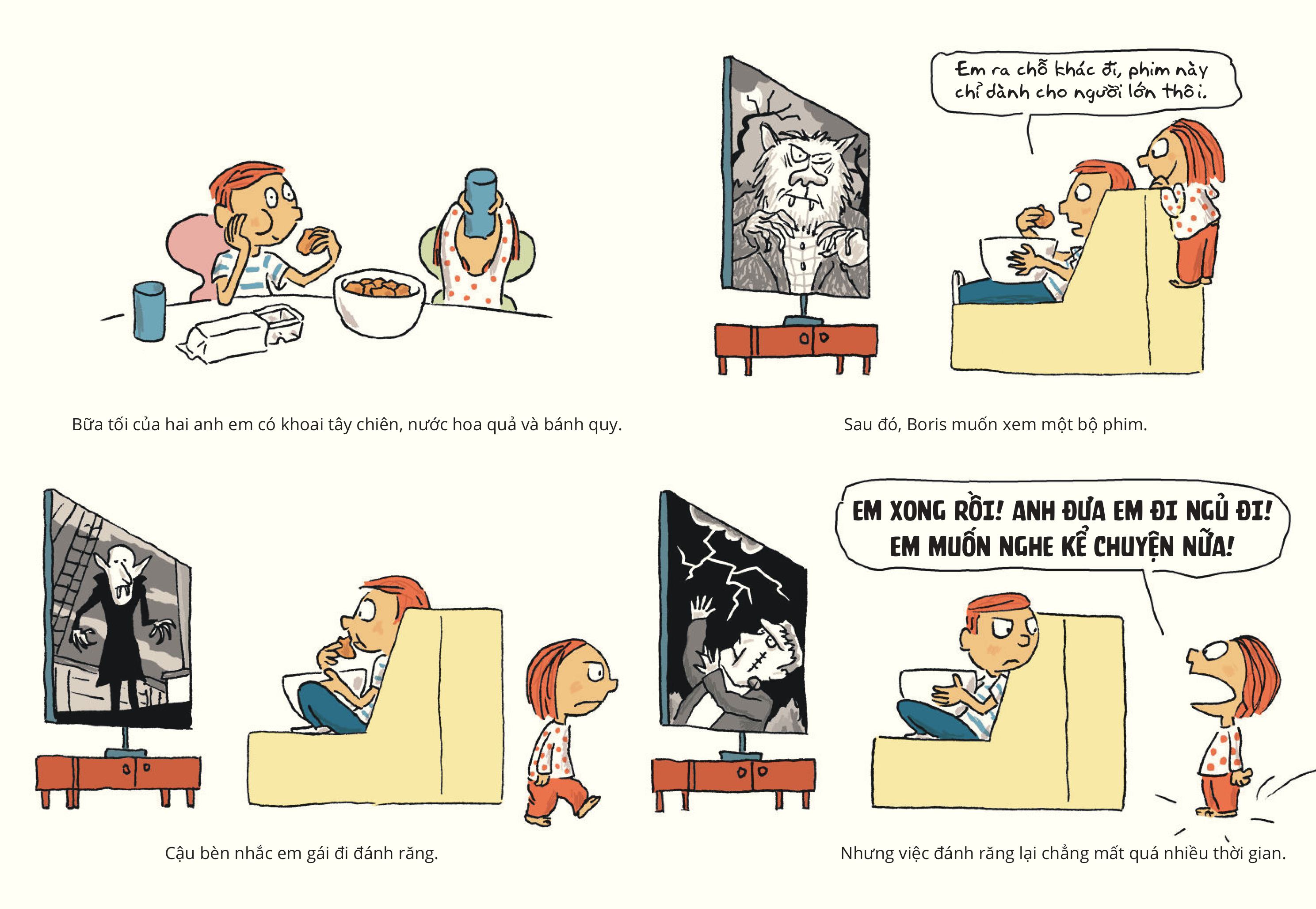 Nhưng kì lạ là Celeste chẳng tỏ ra sợ hãi chút nào, mặc cho Boris đã kể những câu chuyện hồi hộp nhất! Liệu Boris có thể tìm được câu chuyện nào đủ rùng rợn với cô em gái bé nhỏ của cậu hay không?