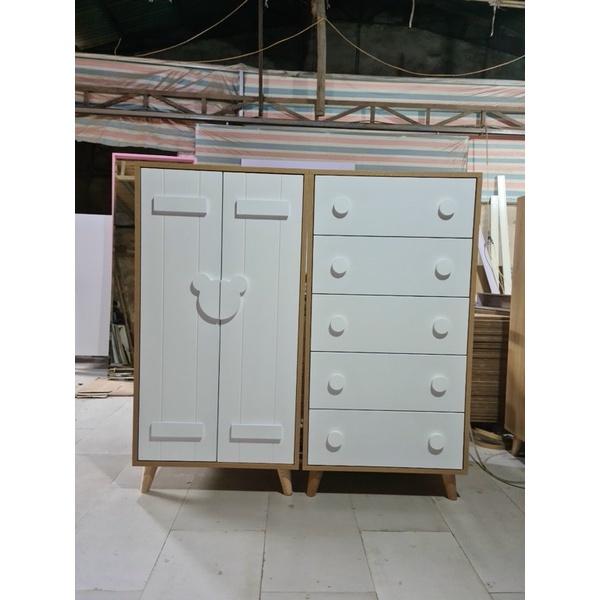 Tủ quần áo kết hợp kệ để đồ cho bé.