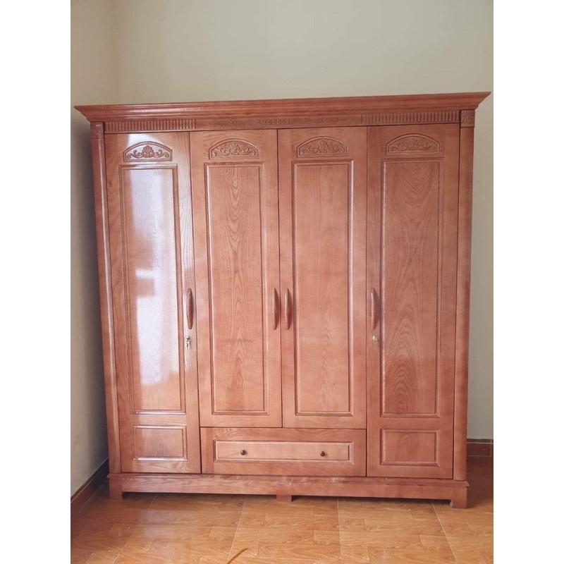 Tủ quần áo 4 cánh gỗ gõ đỏ đầy đủ công năng, thiết kế hiện đại | Minh Khôi