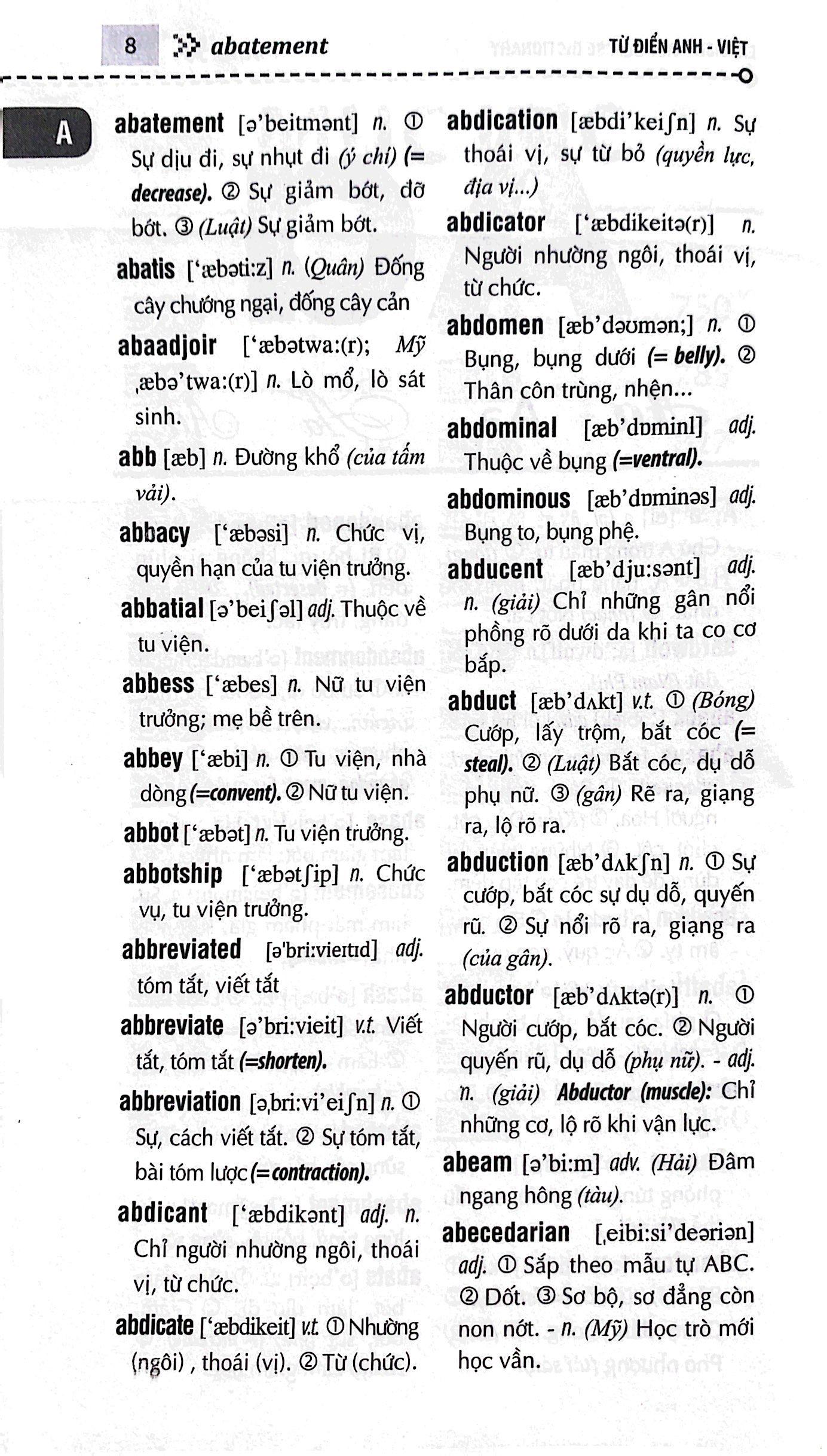 Nhằm đáp ứng nhu cầu học tiếng anh đa dạng của độc giả , chúng tôi đã biên soạn bộ từ điển Anh - Việt để phục vụ cho người học tiếng anh thuộc mọi