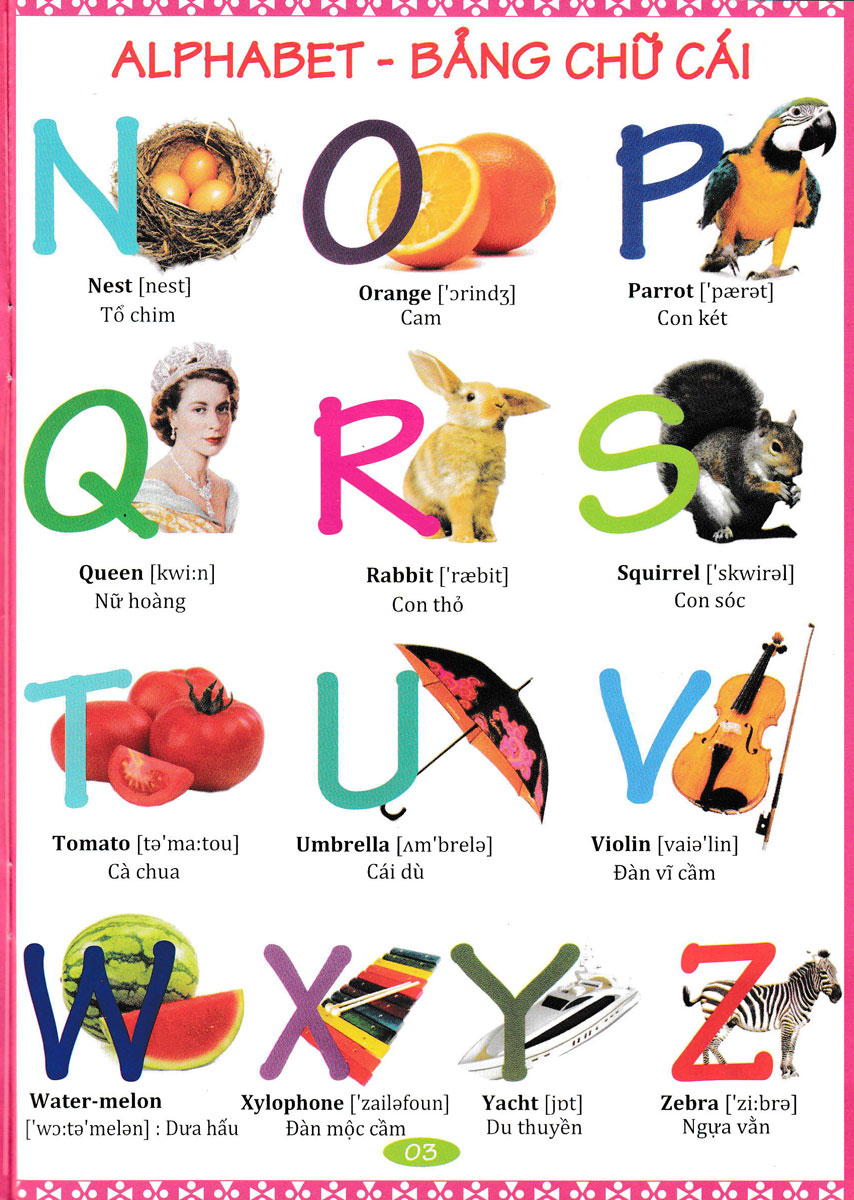 Từ Điển Anh Việt Bằng Hình ẢnhTừ Điển Anh Việt Bằng Hình Ảnh gồm các nội dung:Alphabet - Bảng chữ cáiNumbers (1-10) - Số (1-10)Colours - Màu sắcFamily - Gia đìnhThe house - NhàInside the house - Bên ...