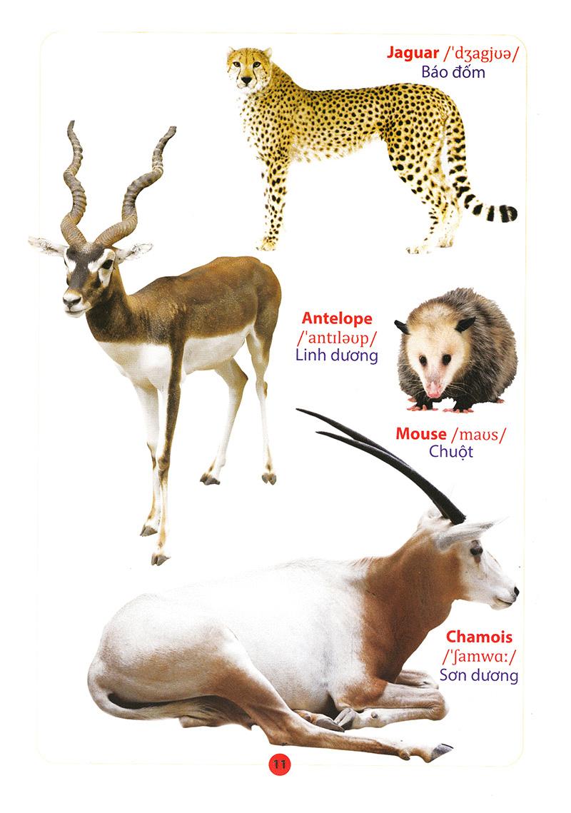 Cuốn sách không chỉ hỗ trợ bé học tiếng Anh nhanh và dễ dàng mà còn đem đến thế giới động vật phong phú, từ những vật nuôi quen thuộc trong đời sống hàng ngày đến các loài động vậ sống trong rừng, dưới biển. Hình minh họa sống động đi kèm với mỗi từ tiếng Anh (có phiên âm quốc tế, chú giải nghĩa tiếng Việt) sẽ giúp các bé dễ dàng làm quen, tra cứu, từ đó thích thú và học nhanh hơn.