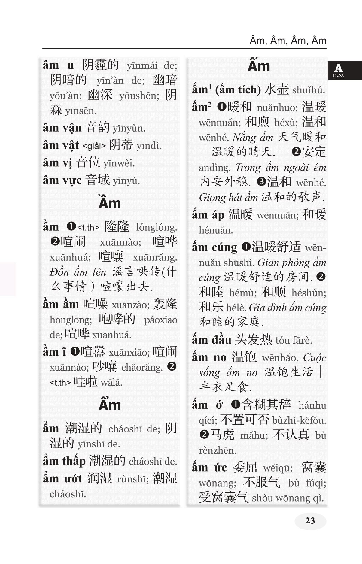 Khổ 10x16, bìa cứng, 1424 trang, in giấy trắng đẹp Nhằm đáp ứng nhu cầu tra cứu từ Việt sang Hán của người học tiếng Hán, nhất là để phục vụ cho đối tượng học
