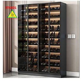 Tủ đựng giày dép cánh kính thường được sản xuất, gia công từ cánh kính. Loại tủ này thường được thiết kế có nhiều ngăn để để được nhiều loại giày, dép mỗi loại 1 ngăn riêng khá tiện dụng. Khung cánh kính: Bộ khung cánh kính cấu tạo tủ mang đến độ bền cao, không oxi hóa, không cong vênh hay có thể chống mối mọt. Khung cánh kính với góc nhìn sáng phù hợp với mọi màu sắc trang trí căn nhà. Cánh Kính: Tủ để giày dép có thể kết hợp với cánh kính để cấu thành tủ. Kính cường lực có độ dày nhất định, chịu được sức nặng. Loại kính cao cấp có độ sáng trong, sạch đẹp và không bị cũ, mặt kính cũng dẽ dàng vệ sinh hơn. Tủ có thể có nhiều màu sắc khác nhau tùy theo yêu cầu của khách hàng. Các mẫu màu thông dụng là trắng, đen vân gỗ. Tủ đựng giầy dép bằng cánh kính có mức giá khá phong phú. Tùy theo kích thước hoặc theo yêu cầu cụ thể của khách hàng mà báo giá khác nhau.