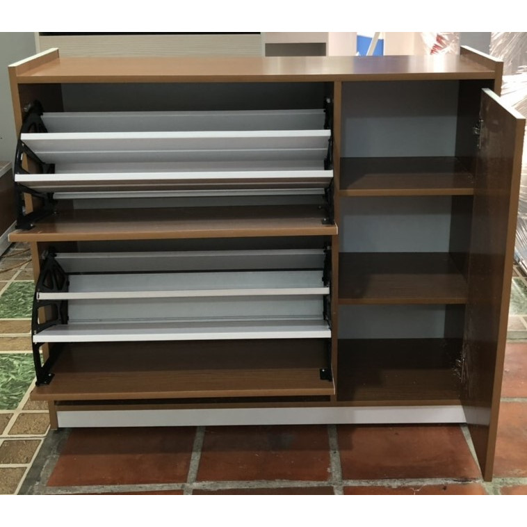 - Kích thước: - Tủ 2 cánh : Dài 60cm, Rộng 32cm, Cao 92cm. - Tủ 4 cánh : Dài 120/140cm, Rộng 32cm, Cao 92cm. - Chất liệu: Gỗ MDF phủ melamin chống xước chống nước dễ dàng vệ sinh. - Phong cách: Hiện Đại - Công năng: Sử dụng để cất giày dép tại căn hộ, tại văn phòng, tại quán cafe, tại shop spa salon vô cùng thích hợp. - Cấu tạo: Lắp ráp