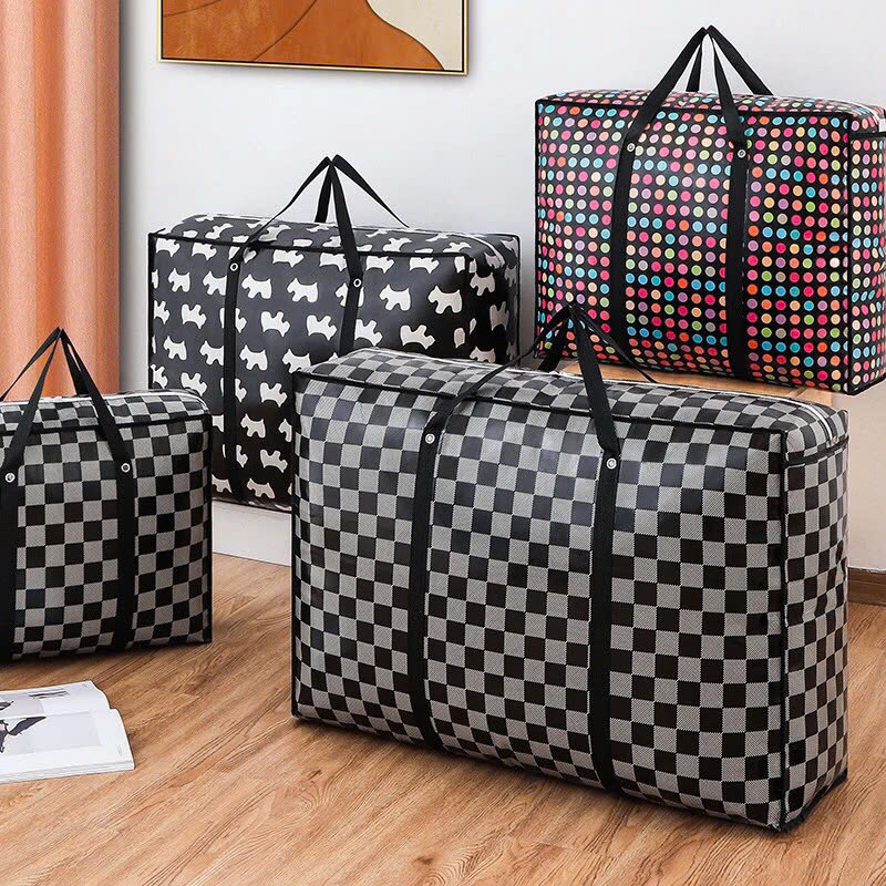 -Giỏ đựng chăn màng quần áo đa năng , họa tiết caro sọc trắng đen cao cấp ,có dây kéo ,quai cầm giúp tiện lợi trong việc cầm , xách di chuyển tiết kiệm không