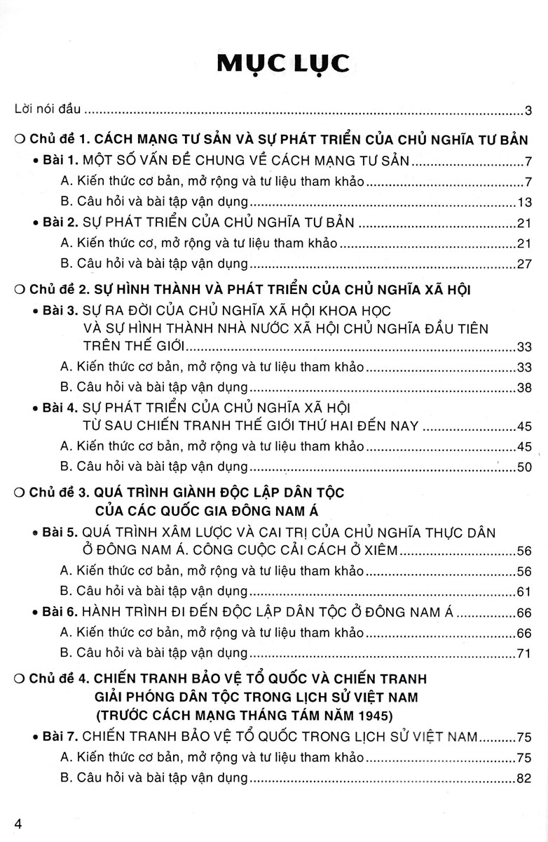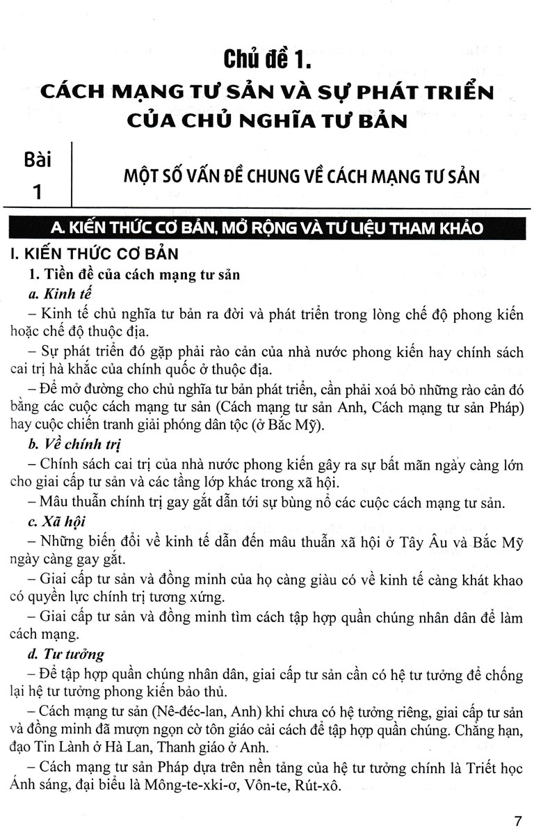 I. Kiến thức cơ bản: Được tác giả biên soạn theo sách giáo khoa với từng ý chính, có tính logic, vừa giúp giáo viên soạn giảng cô đọng, ngắn gọn và dễ hiểu, vừa giúp học sinh dễ nắm vững kiến thức từng bài làm cơ sở vận dụng giải quyết những vấn đề lịch sử theo hướng mở rộng, nâng cao.