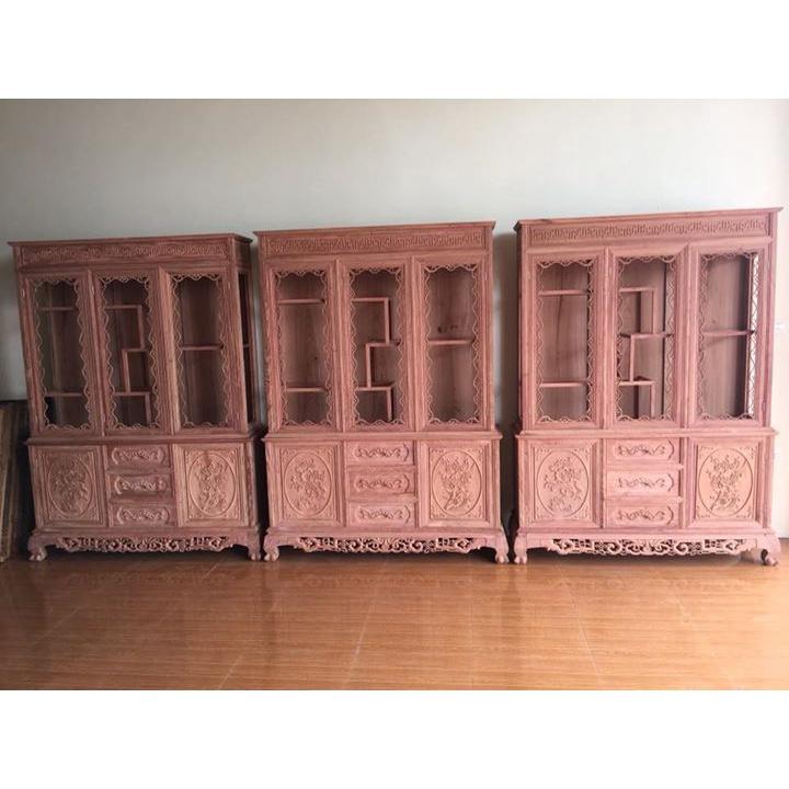 Tủ R gỗ hương 1m2 được thiết kế hình chữ nhật, Phía dưới là cánh và ngăn kéo được đục trạm hoa văn khá tinh tế, tạo nét cổ kính cho sản phẩm
