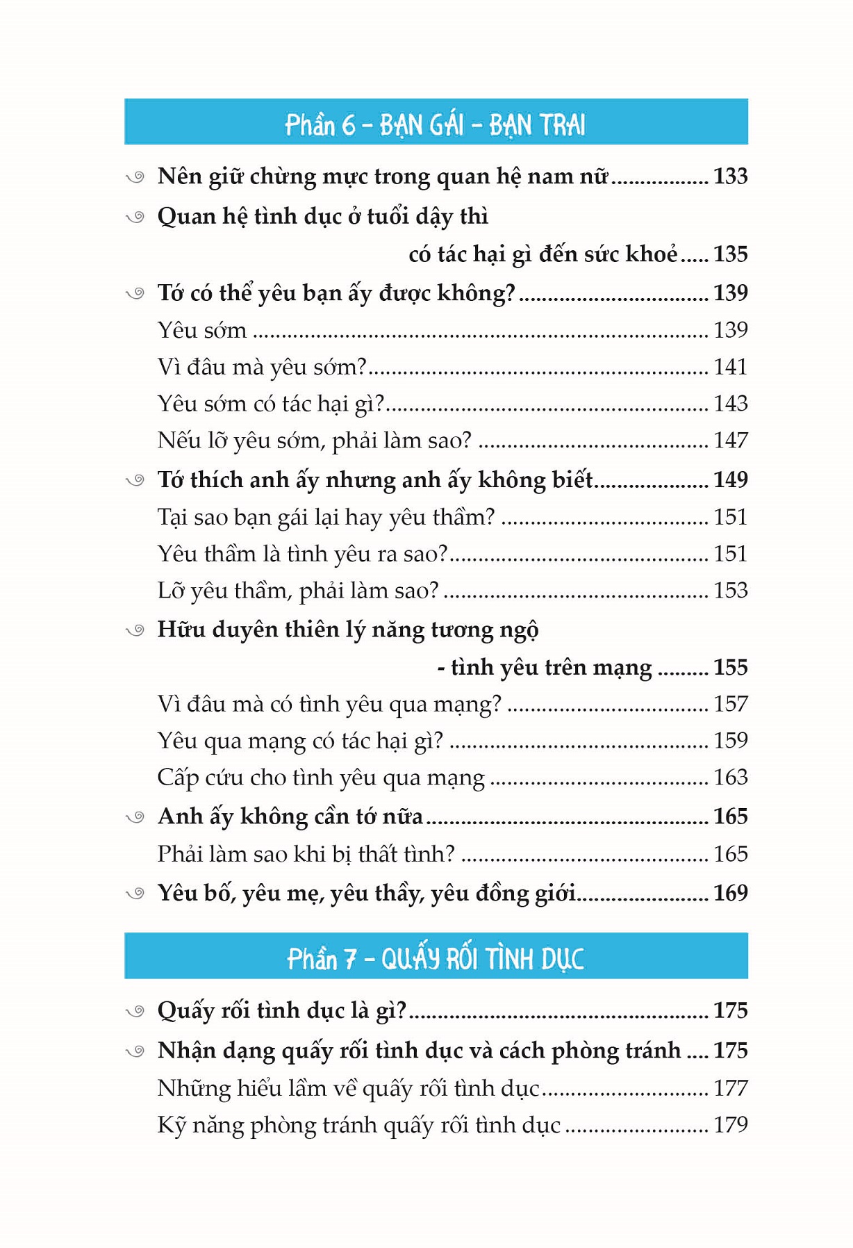 Cuốn sách là cuốn cẩm nang bổ ích giúp bạn gái hiểu hơn về chính mình, biết cách bảo vệ và trân trọng bản thân, để trưởng thành an toàn và khoẻ mạnh.