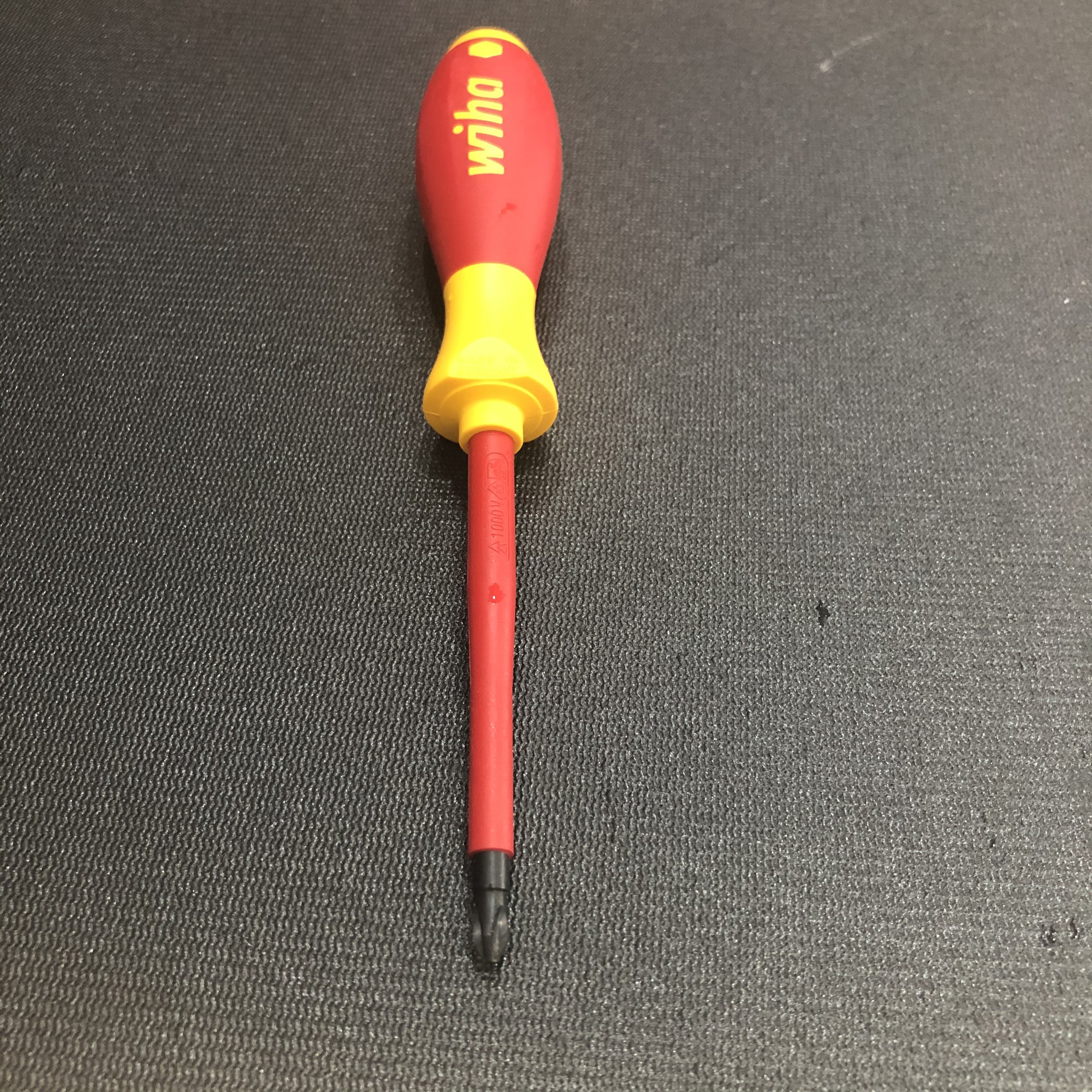 English name:Screwdriver SoftFinish electric Tiêu chuẩnĐược thử nghiệm theo IEC 60900.Ứng dụng Đối với công việc trong khu vực của các bộ phận sống lên đến 1.000 V AC. Size: 2,5 mm Chiều dài: 179