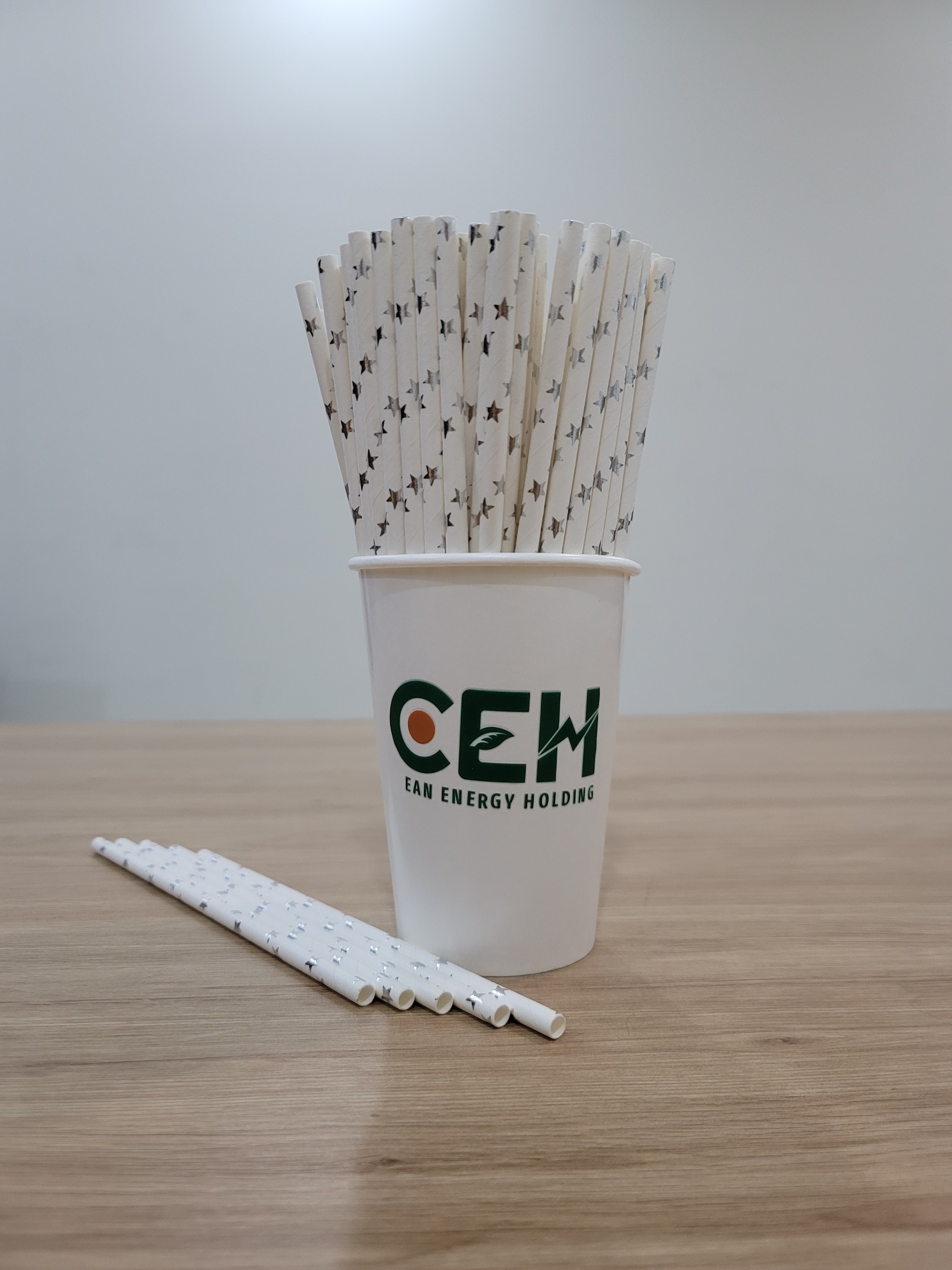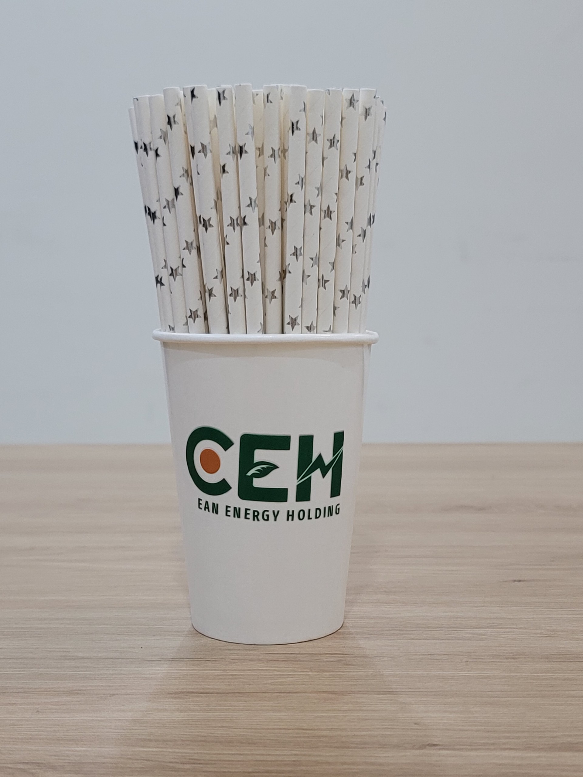 Sản phẩm của công ty Clean Energy Holding Ống hút giấy thân thiện với môi trường, kích thước 12mm x 197mm, phù hợp sử dụng cho các loại đồ uống như trà sữa, sinh tố,