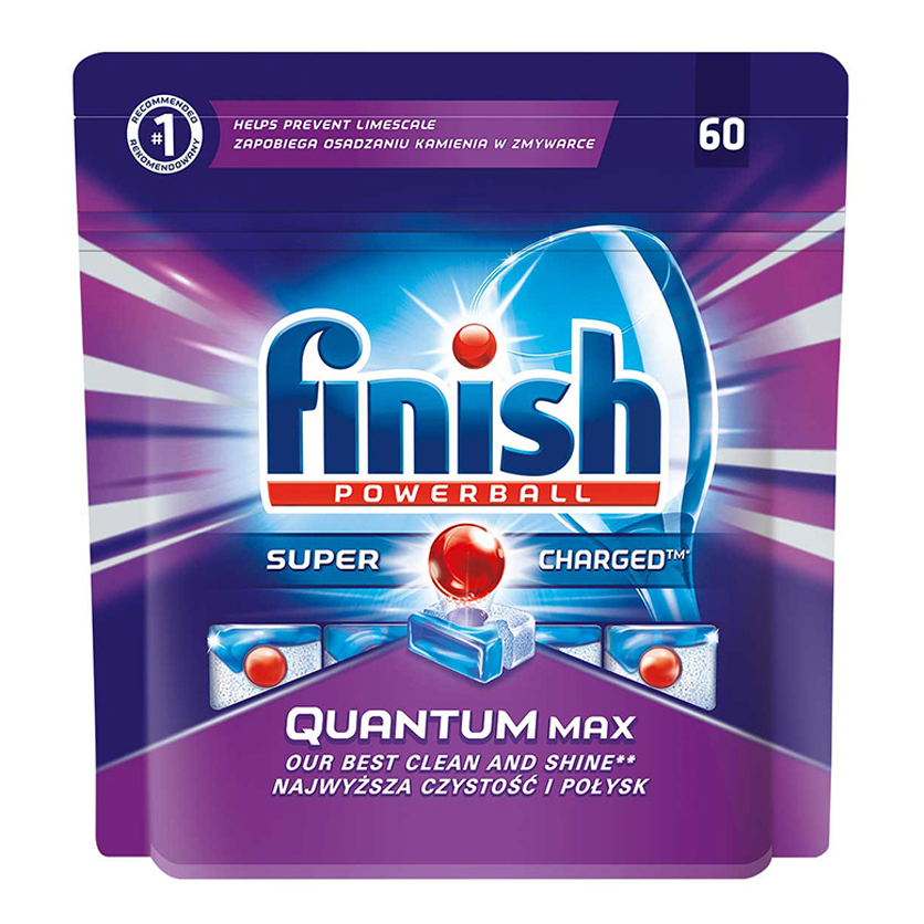 - Riêng với viên rửa chén Finish Quantum Max Dishwasher Tablets với sự tích hợp lượng muối cao giúp các gia đình ở khu vực độ nước cứng cao thật sự hài lòng.