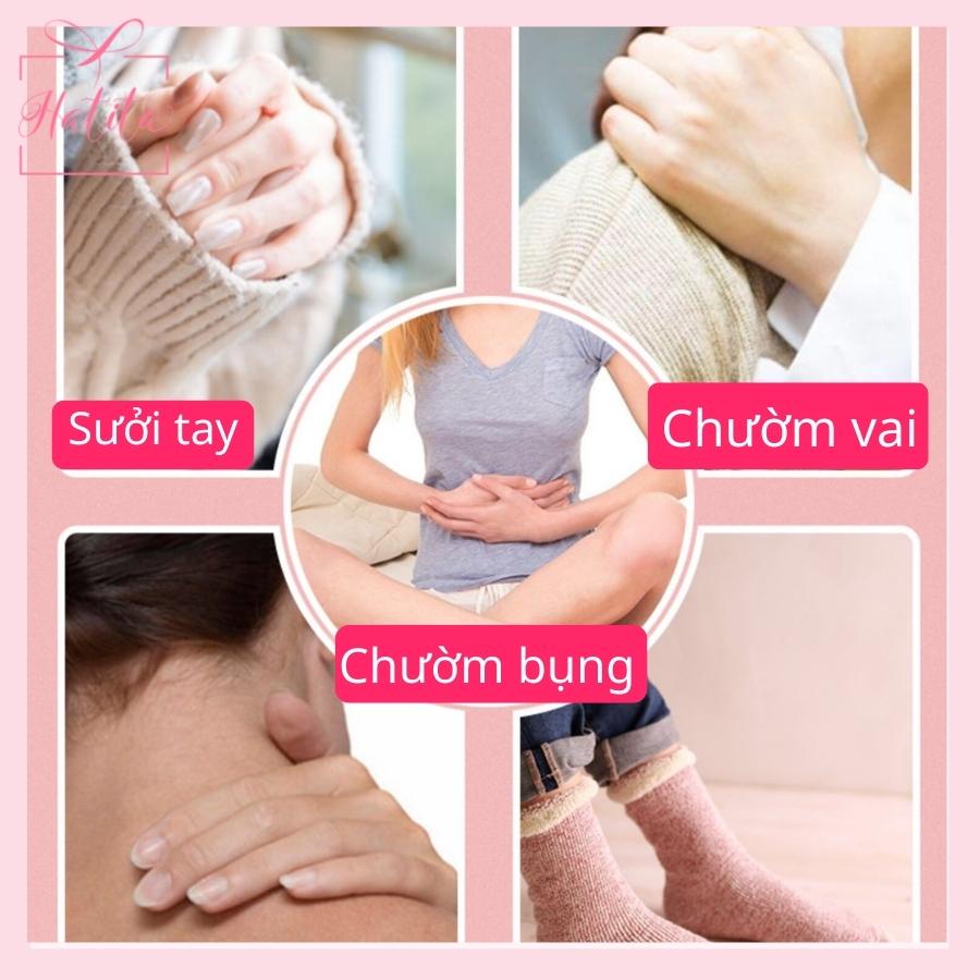 - Chườm giảm đau: khi đau bụng, đau lưng, đau vai, gai đôi cột sống, vôi hoá đốt sống…Sử dụng thường xuyên sẽ giúp khí huyết lưu thông, đẩy lùi các căn bệnh về giãn mỏi cơ, đau cột sống.