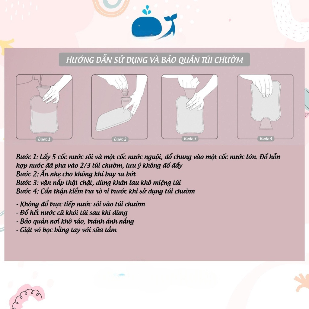 Mua tại TiktokTúi chườm bụng kinh cho nữ 2 lớp bọc vải nhung mềm mịn giúp giữ ấm bụng giảm đau khi bị ngày đèn đỏ. Cấu tạo túi chườm 2 lớp: 1 lớp nhựa PVC-P dẻo và 1 lớp là áo chườm vải nhung mềm mịn giúp tạo cảm giác dễ chịu thoải mái khi chườm.