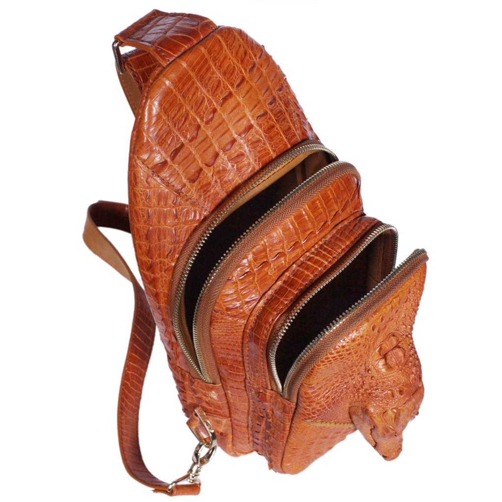 Mẫu túi đeo chéo da cá sấu nam Huy Hoàng này được làm toàn bộ từ lớp da cá sấu nguyên con, với hình dạng đầu cá sấu thật 100%, độc đáo, thể hiện sự mạnh mẽ của nam giới. Với thiết kế vừa phải chiếc Túi Nam Đeo Chéo Da Cá Sấu Huy Hoàng có thể giúp bạn đựng tất cả những món đồ phục vụ nhu cầu cá nhân cần thiết như Ipad, ví, sổ tay, điện thoại và các phụ kiện đi kèm. Dây đeo túi có độ bền cao, chịu lực tốt, thay đổi chiều dài dễ dàng giúp người dùng có thể thoải mái thay đổi độ dài khi đeo, phù hợp sở thích, dáng người, phong cách thời trang.