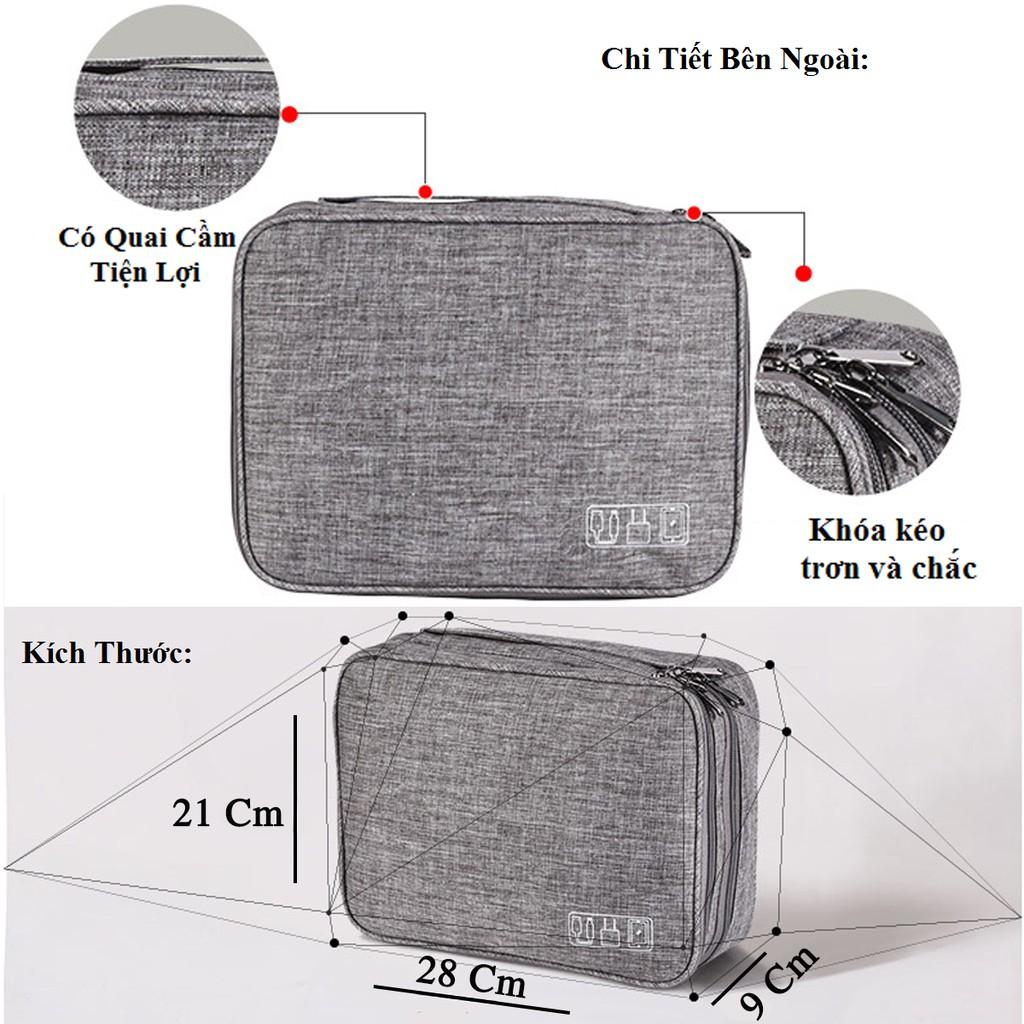Túi Đựng Phụ Kiện Điện Thoại Máy Tính 2 Ngăn Lớn Cải Tiến Nhiều Ngăn Chống Nước, Chống Sốc Chính Hãng miDoctor