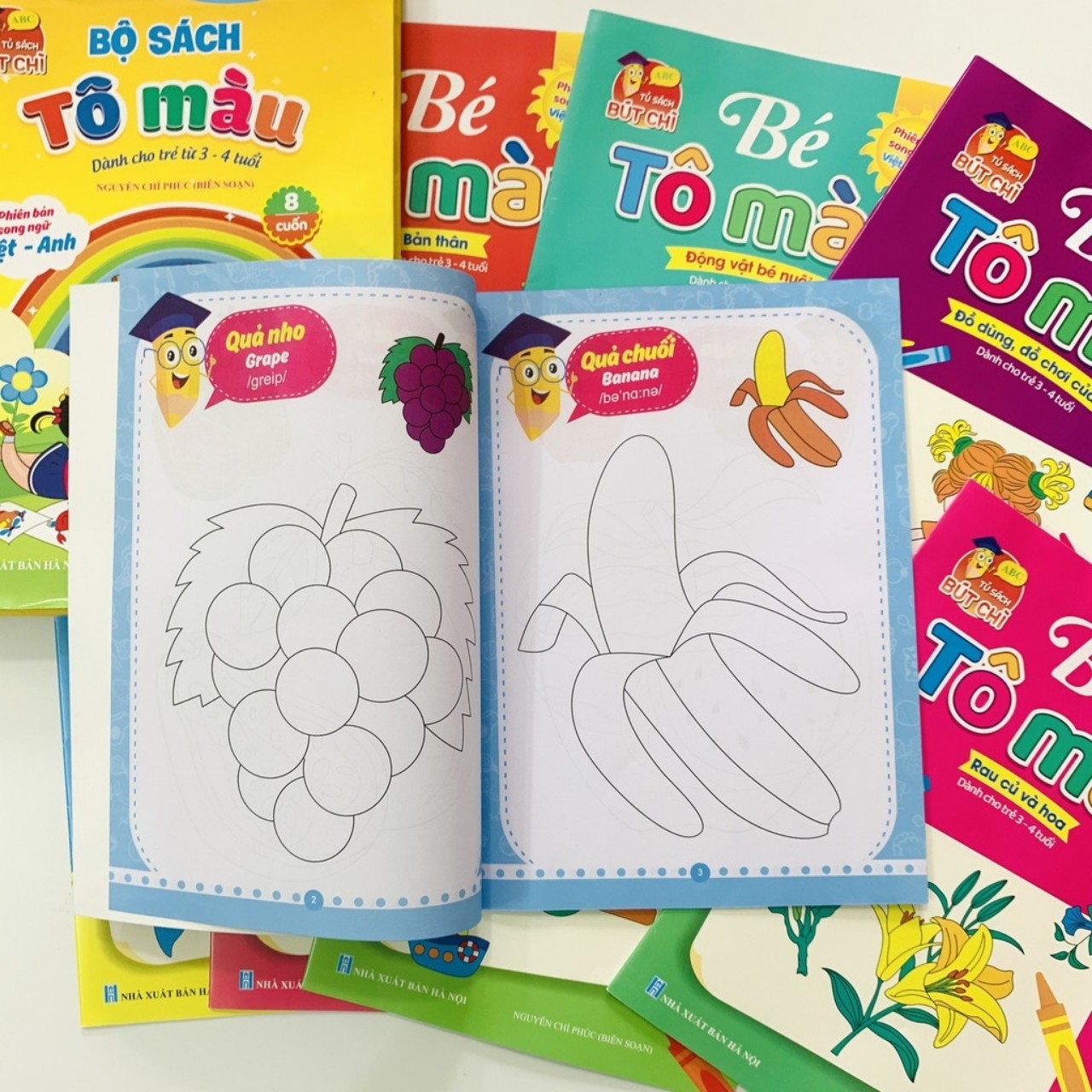 Bộ 8 cuốn Tô Màu Phát Triển Trí Thông Minh Dành Cho Bé 2-6 tuổi Song Ngữ Việt Anh Rèn Luyện Khả Năng Tư Duy Phát Triển Trí Tuệ Toàn Diện Bộ sách gồm: 1.