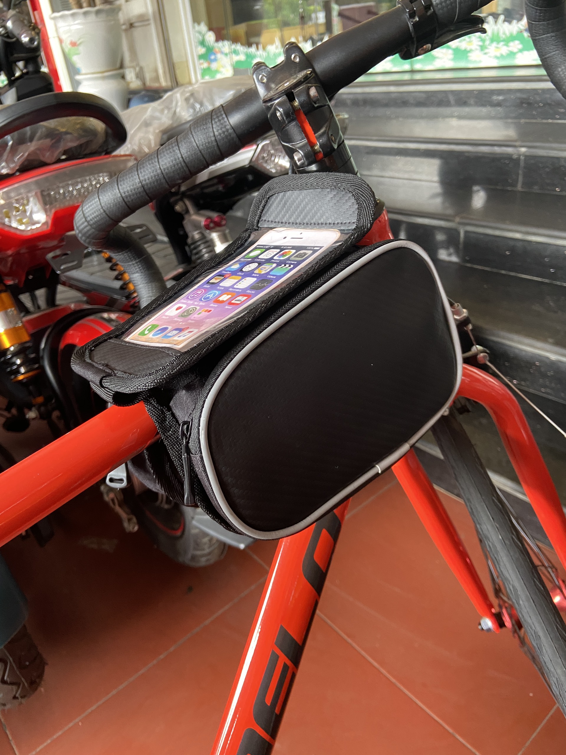 THÔNG TIN SẢN PHẨM: TÚI TREO SƯỜN XE ĐẠP KÍCH THƯỚC: 19*9*14*16*6cm CẢM ỨNG CỰC NHẠY QUA CỬA SỔ TRONG SUỐT, 3 NGĂN CHỐNG NƯỚC, CHỐNG SÓC CỰC TỐT Túi treo sườn xe đạp thể