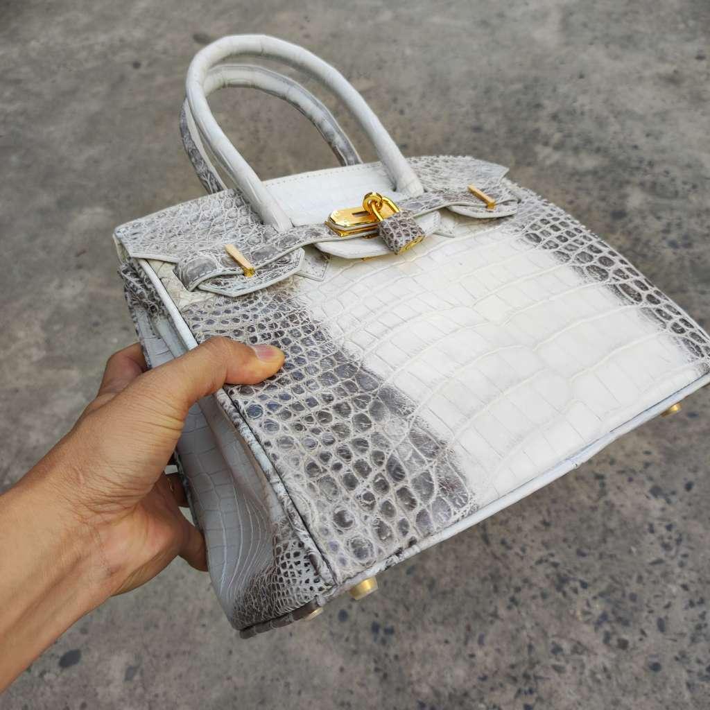Túi xách da cá sấu bạch tạng màu trắng hymalia #tuidacasaubachtang #tudacasau