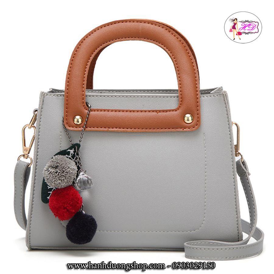 Túi xách thời trang vuông giản dị, gắn chùm phụ kiện dễ thương, chất liệu da cao cấp, có dây đeo chéo tiện dụng - Hạnh Dương