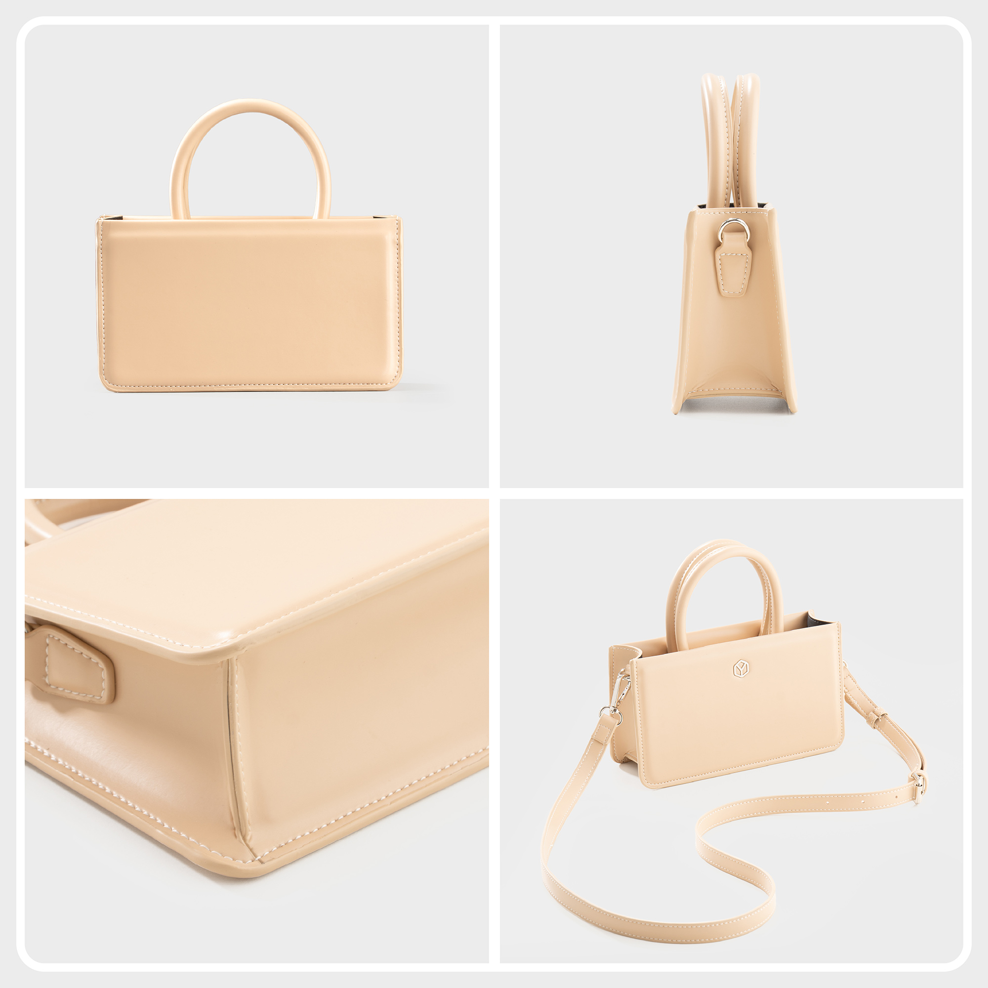 Túi đeo chéo da Yuumy Glossy YN303 với form hộp nhỏ gọn, bo góc mềm mại và đường chỉ may chia ô đối xứng, sản phẩm tạo cảm giác chỉn chu và thời trang trong