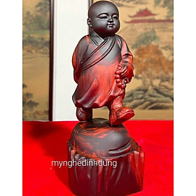 Mua tại Tiktok_ Tượng chú tiểu thong dong được làm bằng chất liệu gỗ trắc đỏ đen tự nhiên 100%