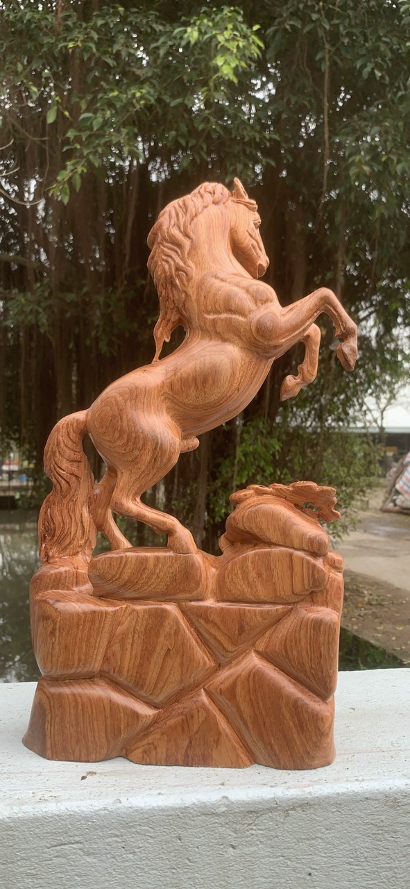 _ Tượng con ngựa nhất mã phi thiên được trạm khắc vô cùng tỉ mỉ tinh sảo kỳ công đi hầu hết tất cả mọi chi tiết góc ngách nội dung hoa văn của tượng đều được ngọt tỉa chỉnh sửa hoàn toàn bằng tay thủ công .Đồng thời tượng được kiểm định rất kỹ lưỡng như cho vào thẩm sấy cho gỗ khô kiệt .Mục đích trống dập nứt vênh mo mối mọt .Kết hợp với trà nhám đánh giấy giáp nhiều lần cho sạch sẽ ,sờ mát lạnh ,Song cho vào  phun lót làm bóng mờ để giữ lại mầu sắc vân gỗ tự nhiên .Tượng được làm và hoàn thiện do bàn tay khối óc tài hoa từ những người thợ giàu kinh nghiệm cũng như tay nghề cao trong làng nghề truyền thống .Chính vì thế tượng con ngựa đã đáp ứng đầy đủ những tiêu trí ( Đẹp bền rẻ ) Thẩm mỹ nghệ thuật với chất lượng tuyệt vời