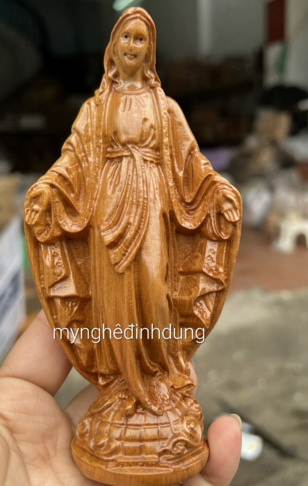 Mua tại TiktokTượng đức mẹ bạn ơn được làm bằng chất liệu gỗ bách xanh liền khối tự nhiên 100% kt cao 20x8x6cm _ Tượng được chạm khắc gọt tỉa vô cùng ti mỉ tinh xảo kỳ công. Đi hầu hết tất mọi chi tiết góc ngách nội dung hoa văn của tượng đều được gọt tỉa chỉnh sửa sắc nét hoàn toàn bằng tay thủ công truyền thống.