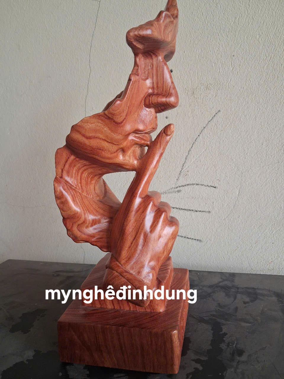 ✨Tượng im lặng là vàng bằng gỗ hương đá đẹp long lanh cao 34x11x12cm