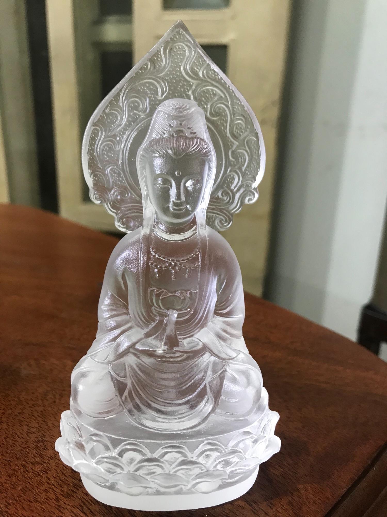 - Tượng Phật Bà Quan Âm Đá Lưu Ly Trắng Để Xe Hơi hoặc Bàn