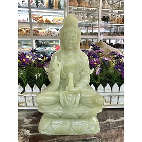 ✨Tượng Phật Bà Quan Thế Âm Bồ Tát ngồi đài sen đá ngọc Onyx - Cao 30cm