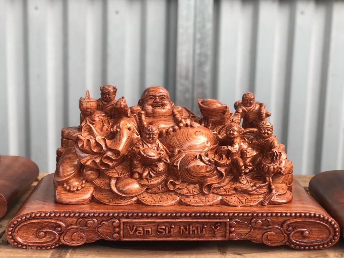 Tượng phật di lặc ngũ phúc liền khối gỗ hương đá nam phi