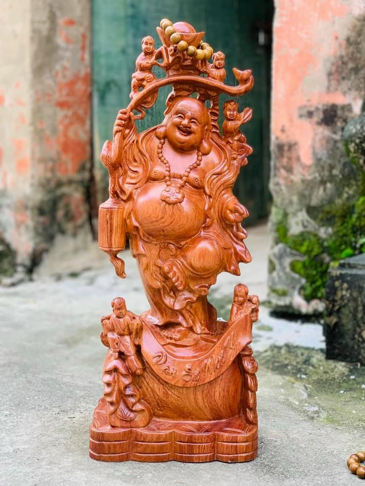 ✨Tượng phật di lặc ngũ phúc bằng gỗ hương kt cao 60×24×23