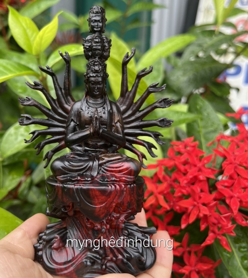 ✨Tượng phật thiên thủ thiên nhãn bằng gỗ trắc đỏ đen kt cao 15x11x6cm