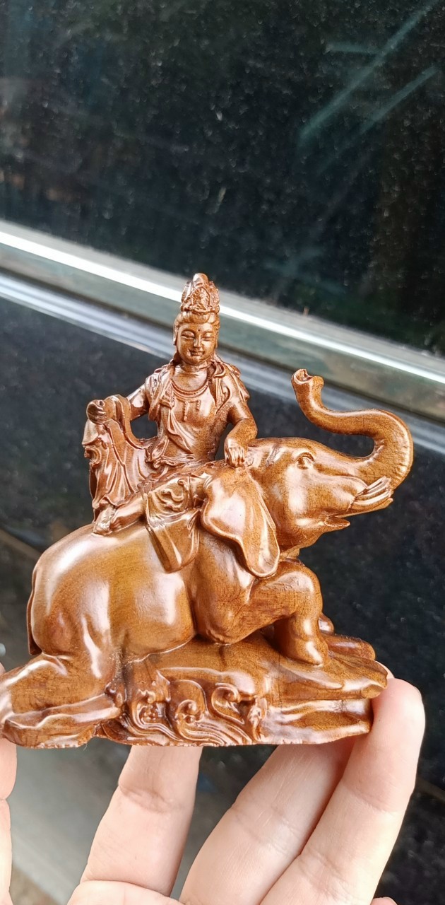 ✨Tượng văn thù phổ hiền bồ tát bằng gỗ bách xanh thơm nức kt 16×15×6cm