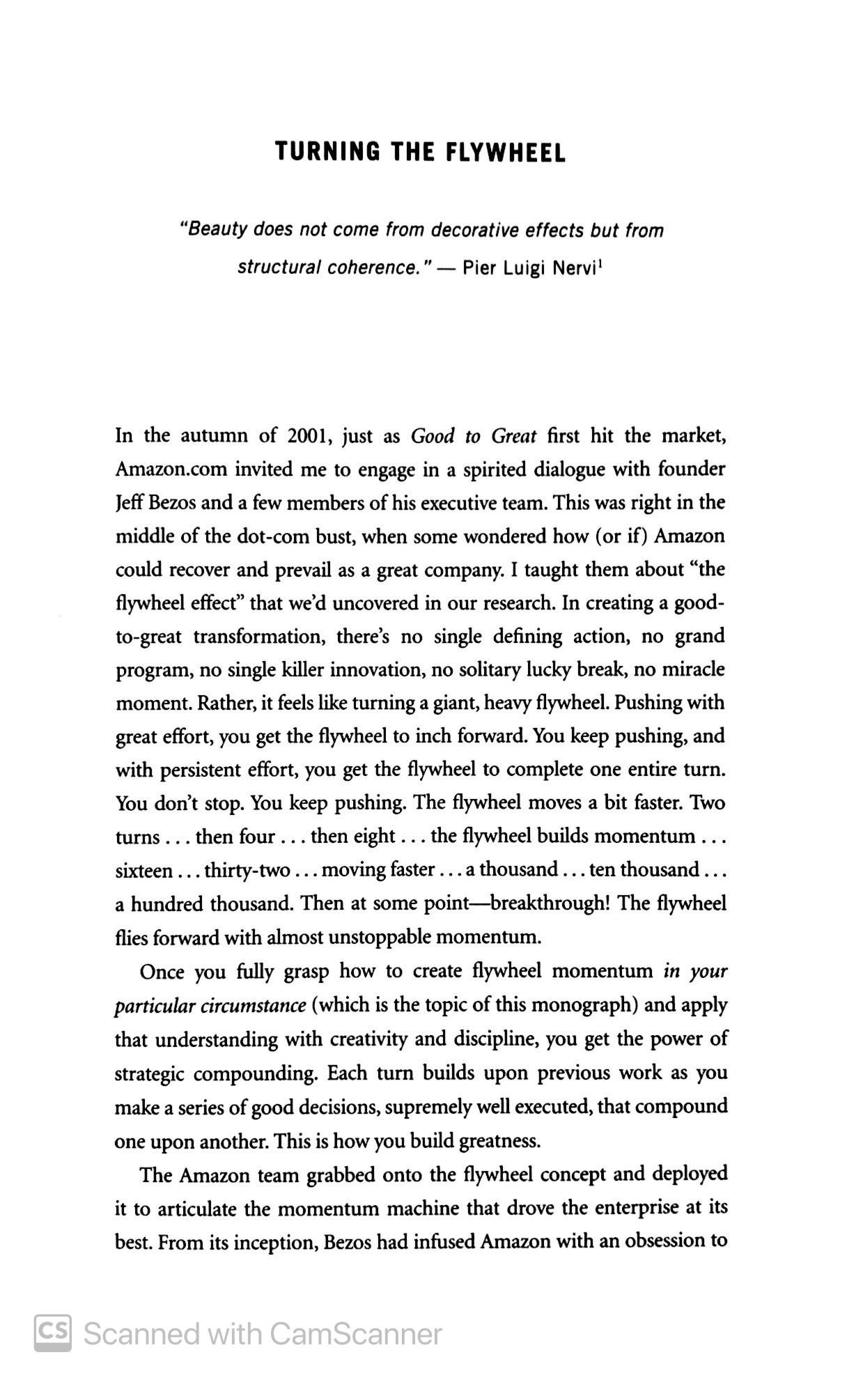A companion guidebook to the number-one bestselling Good to Great, focused on implementation of the flywheel concept, one of Jim Collins’ most memorable ideas that has been used across industries and the social sectors, and with key to business success is not a single innovation or one plan. It is the act of turning the flywheel, slowly gaining momentum and eventually reaching a breakthrough. Building upon the flywheel concept introduced in his groundbreaking classic Good to Great, Jim Collins teaches readers how to create their own flywheel, how to accelerate the flywheel’s momentum, and how to stay on the flywheel in shifting markets and during times of turbulence.