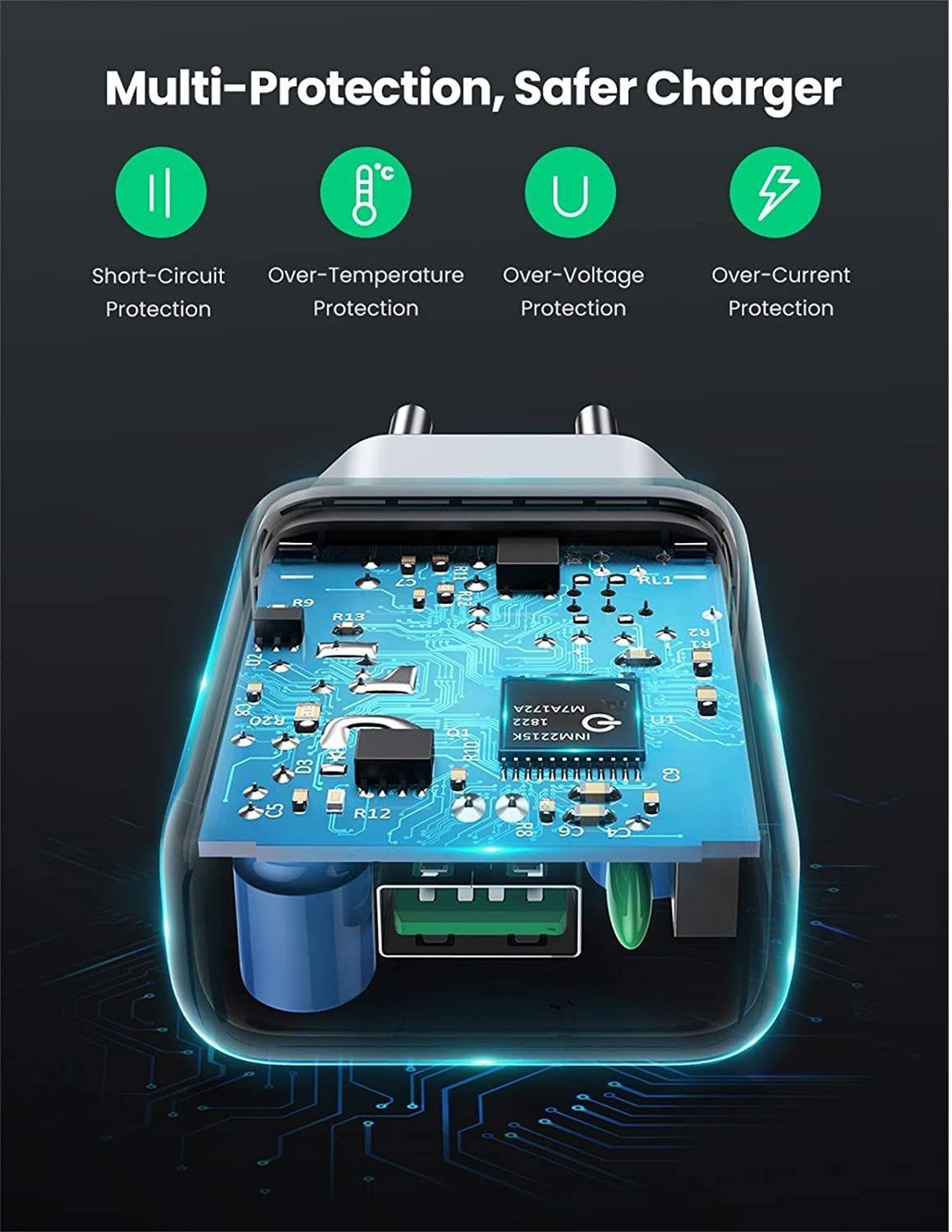 1. 2 USB Ports Charger 36W 2. PD3.0 / QC3.0 3. Support all devices 4. Automatically disconnects, and at the same time has some protection against overcharging and overvoltage 5. 10 x 10 x 5