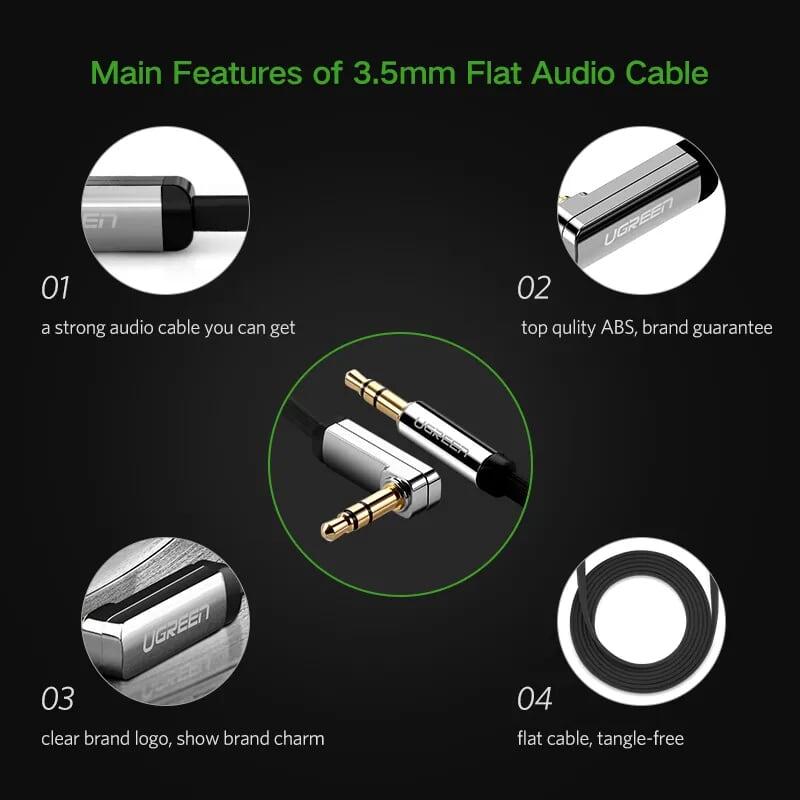 Mua tại TiktokUgreen 10598 3.5Mm Male To 3.5Mm Male Right Angle Flat Cable Gold Plated 1.5M AV119