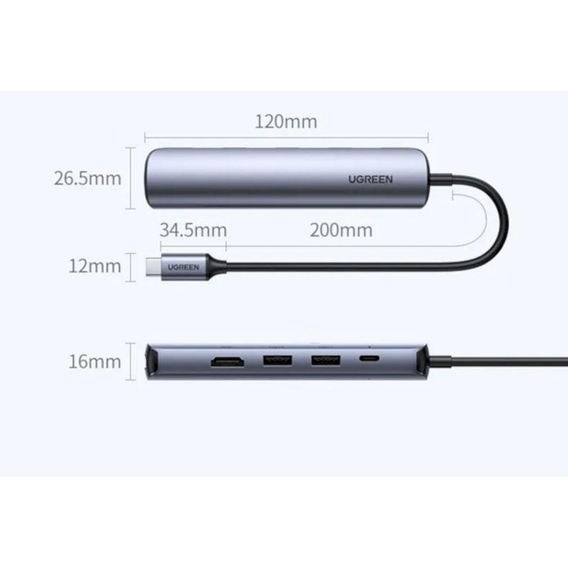 Ugreen 20010919 5 trong 1 màu xám Bộ chuyển type c To 2 * USB 3.0 A + HDMI + RJ45 + PD Converter CM418 10010919