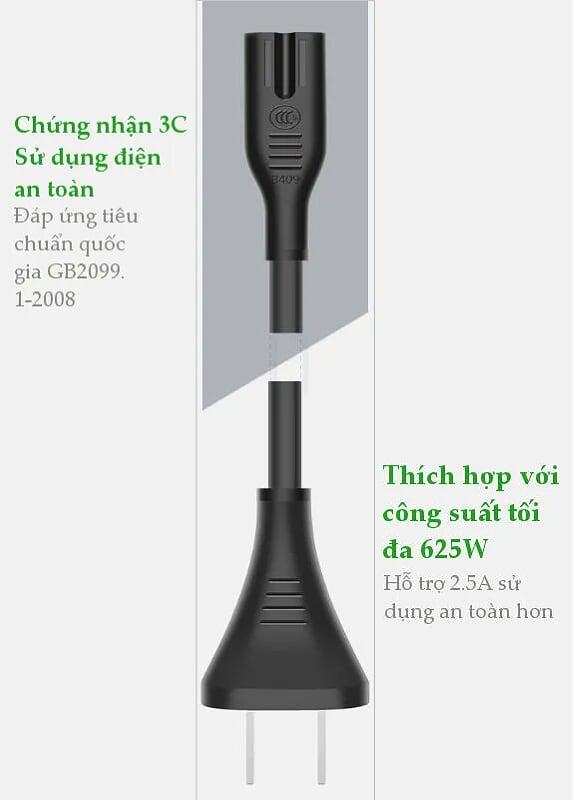 1. Hãng : Ugreen2. Mã sản phẩm : 40312 - CD1593. Màu sắc: Black4. Chiều dài : 1M5. Chất liệu: Nhựa PVC6. Công suất tối đa: 625W7. Điện áp định mức: 250V8. 20 x 10 x 1 cm9. 100g...