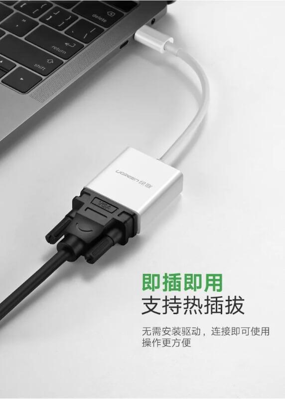 Ugreen 40378 type c to vga dual usb ethernet converter trắng mm135 1. Features: Convert USB-C to VGA Full HD + 2 USB 3.0 ports + 1 Lan 10 / 100Mbps port. 2. Cable length: